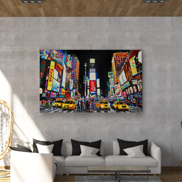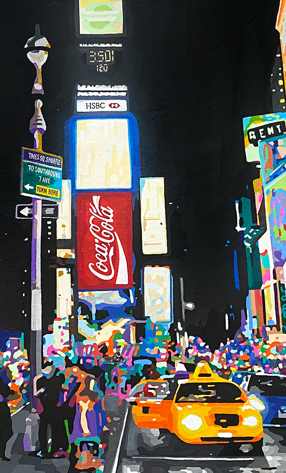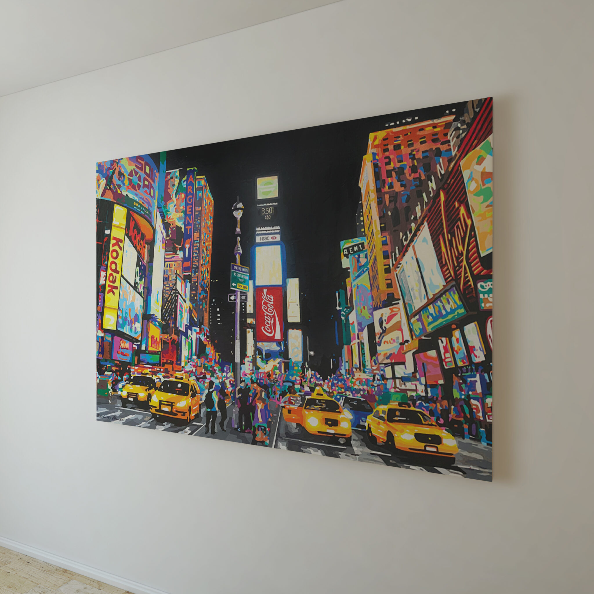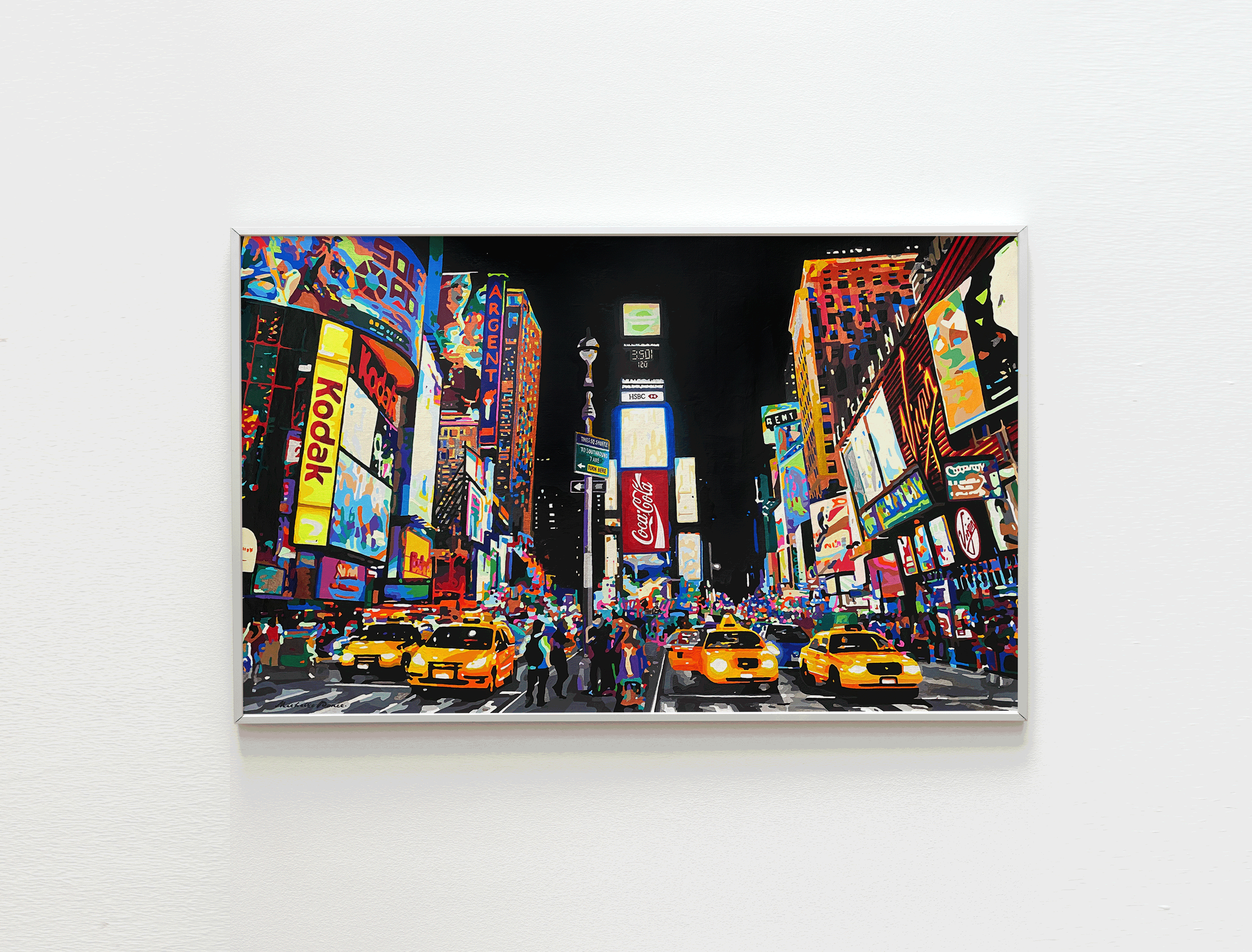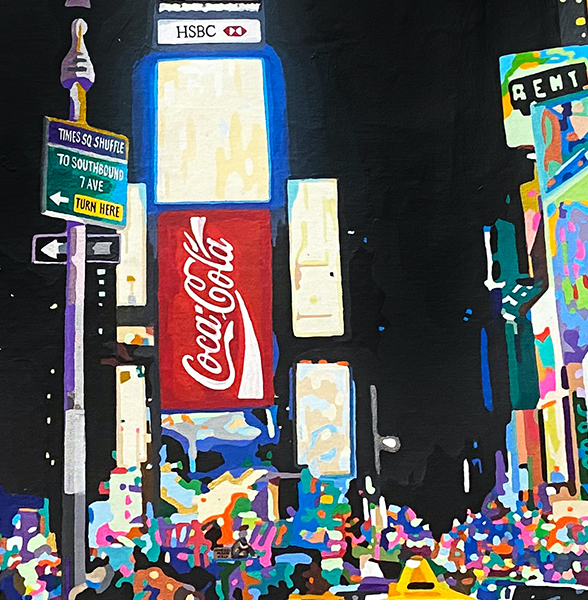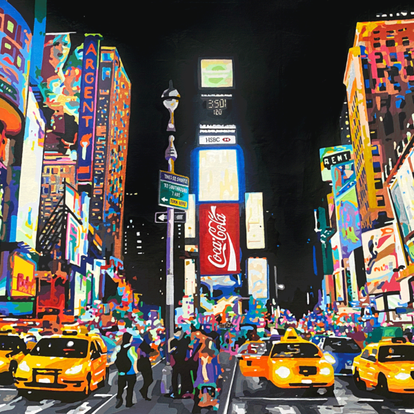 “Times Square in Color”, es una obra inspirada en New York, hecha con acrílico y acabado mate.